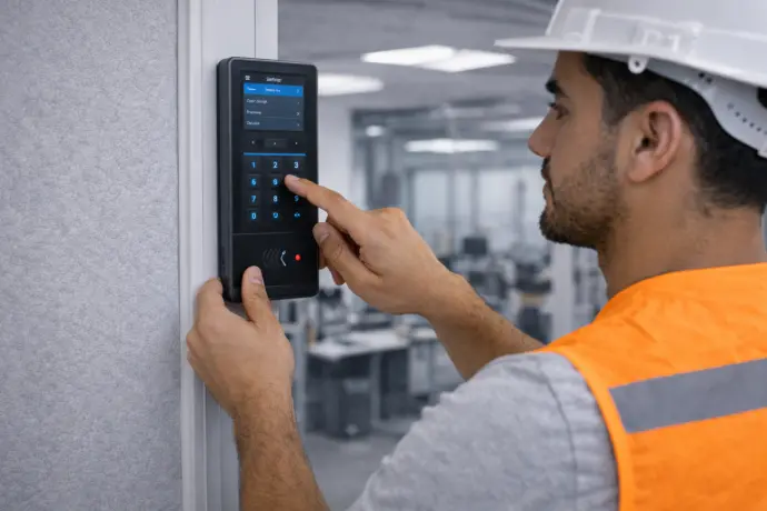 Instalación de lectores biométricos de huella dactilar en puertas, asegurando que solo las personas autorizadas puedan acceder a áreas restringidas. La tecnología biométrica garantiza mayor seguridad que los métodos tradicionales.